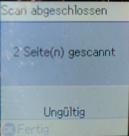 Klick 3) Nach dem Scan zeigt der Scanner eine Zusammenfassung an. Diese verschwindet auch nicht irgendwann automatisch. Zumindest nicht in einer brauchbaren Zeit, um den nächsten Scan anzustoßen. Also muss hier zwangsläufig mit "OK" bestätigt werden. Ich habe nicht explizit über Stunden getestet ob/wann sie verschwindet, aber nach einer unteren 2 stelligen Minutenzahl jedenfalls nicht.